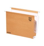 Fabricada en kraft bicolor de 240g. Lomo en U de 20 mm, varillas de acero con terminales en nailon y visor lateral de 137mm. Carpeta colgante con visor lateral varilla metalica A4.