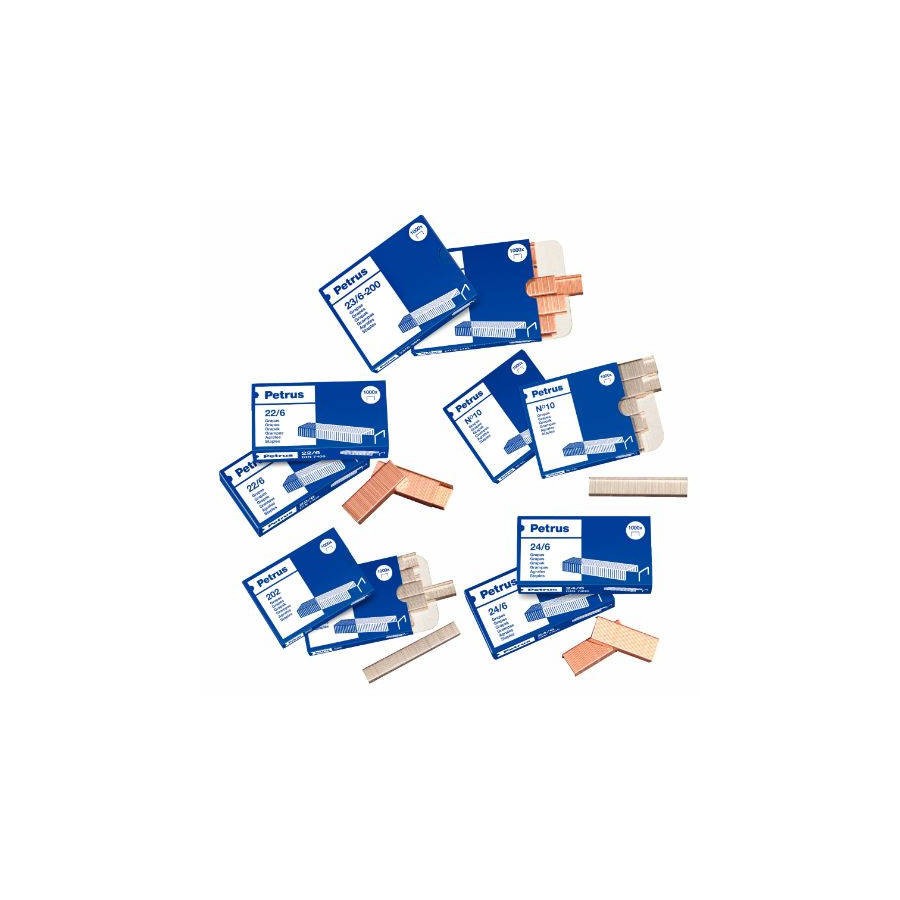 CAJA DE 1000 GRAPAS TIPO 22/8 - 24/8 COBREADAS PARA GRAPADORAS DE SOBREMESA/OFICINA PETRUS 55714